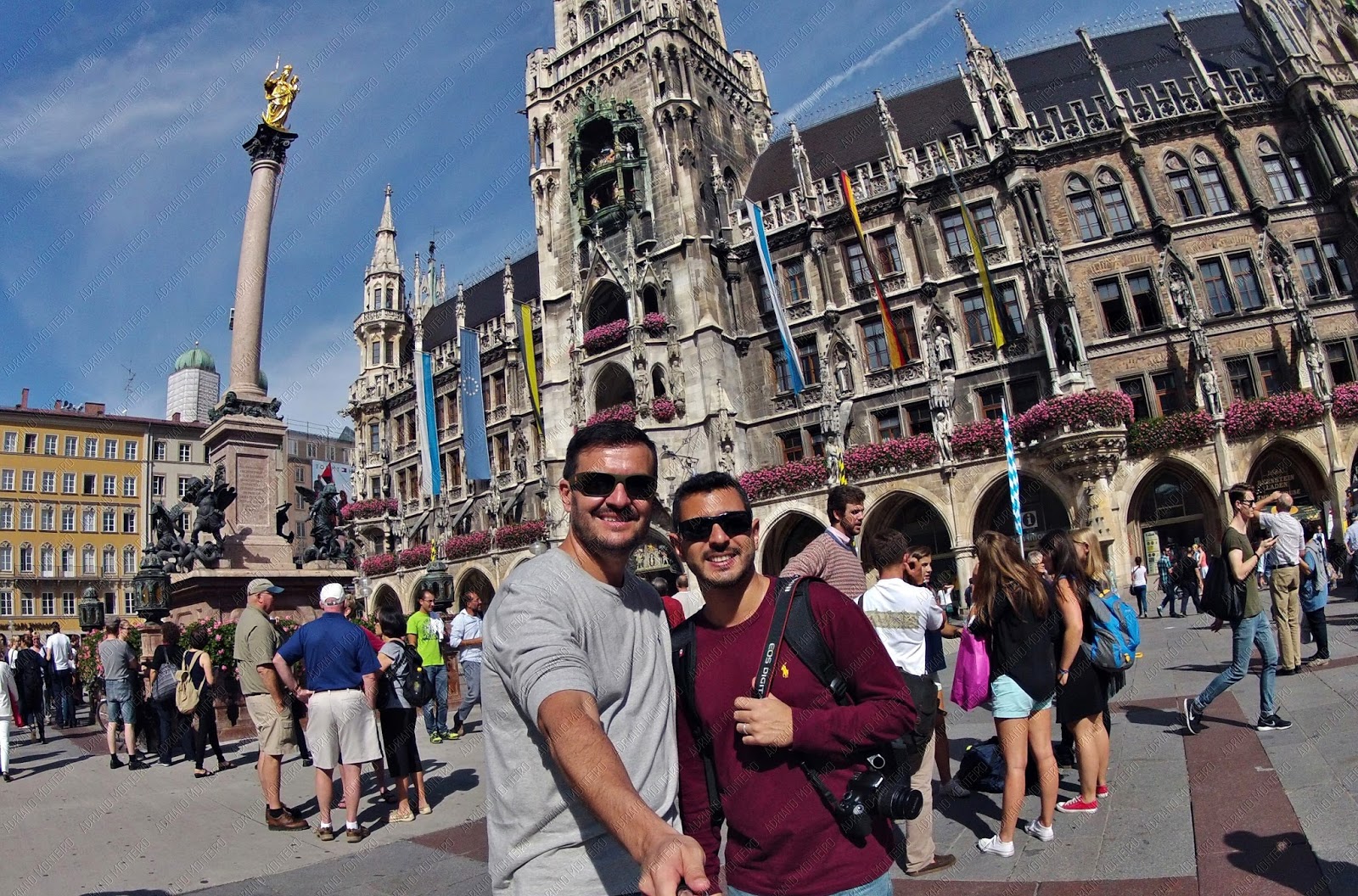 Não há dúvida de que uma das praças mais bonitas da Alemanha é a Marienplatz, no coração de Munique, com a antiga e a nova prefeitura – Altes e Neues Rathaus. Seu famoso toque dos sinos pertence a Munique tanto quanto a cervejaria Hofbräuhaus e a igreja Frauenkirche, o símbolo da cidade, com as cúpulas verdes das suas torres, que podem ser avistadas de longe. A torre principal da nova prefeitura possui um carrilhão de bonecos que, em determinados horários do dia ( 11h, 12h e 17h) ficam animados e musicados por sinos, deixando a platéia eufórica; é a mais famosa atração turística da cidade. Já estive algumas vezes lá, a trabalho e passeio, mas confesso que em nenhuma delas me empolguei com a apresentação…